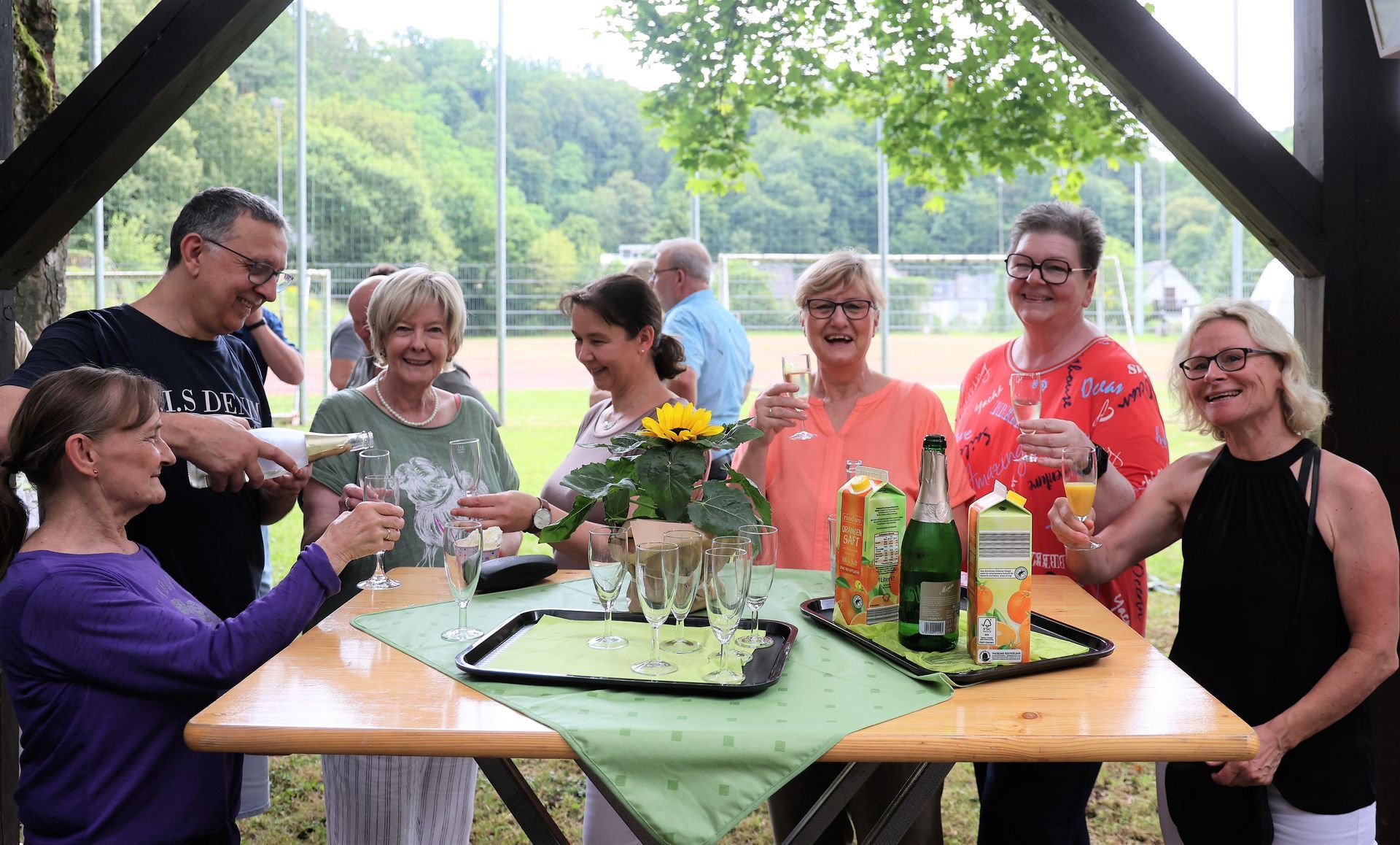 Stoßen auf den ersten Geburtstag des Cafés an (von links): Bella Kaiser, Thomas Kober, Ulrike Klein, Monika Kober, Beate Wilms und Carola Monno. Foto: Jörg Niebergall Altwied. Einen Ort schaffen, an dem sich Menschen aus dem Dorf treffen, austauschen und gemeinsam genießen können – so hatte sich Monika Kober, Initiatorin des „Café im Altwieder Dorftreff“ am Sportplatz den Treffpunkt vorgestellt. Ein Jahr ist es nun her, dass sie und viele ehrenamtliche Helfer die Vision in die Tat umgesetzt haben. Was als Idee begann, hat sich zu einem beliebten Treffpunkt für die Dorfgemeinschaft entwickelt. Am dritten Sonntag im Monat lädt die Dorfgemeinschaft zum gemütlichen Beisammensein ein. Jetzt feierte das „Café“ seinen ersten Geburtstag, gewohnt mit Kaffee, Kuchen, einem Gläschen Sekt und der einen oder anderen Überraschung. Das Dorfcafé wurde von Anfang an sehr gut angenommen. Die Altwieder, aber auch Ehemalige und Freunde Altwieds kommen gern in das umgestaltete „Fußballer-Häuschen“, um gemütlich beisammenzusitzen und in Erinnerungen an vergangene Zeiten zu schwelgen. Die Atmosphäre ist herzlich und familiär, genauso wie es sich Monika Kober und ihr Team erhofft hatten. Die ehrenamtlichen Helfer sind seit jeher das Herzstück des Dorfcafés. Sie backen, servieren und sorgen dafür, dass sich alle Besucher wohlfühlen. Die Gemeinschaft hat sich zusammengeschlossen, um diesen Ort zu einem Ort der Begegnung zu machen. Die Kuchentheke ist stets reich gedeckt mit selbst gebackenen Leckereien, von Omas Apfelkuchen bis zu saftigen Schokotorten. Die Institution ist mehr als nur ein Café. Sie ist ein Ort der Gemeinschaft, an dem sich Menschen unterschiedlichen Alters begegnen. Es wird gelacht, geteilt und genossen. Die Tische sind immer voll, die Gespräche lebhaft. Und wenn die Sonne durch die Fenster scheint, wird der Kaffeeklatsch draußen auf der Terrasse fortgesetzt. Genau so, wie es sich Monika Kober im Vorfeld ausgemalt hatte.